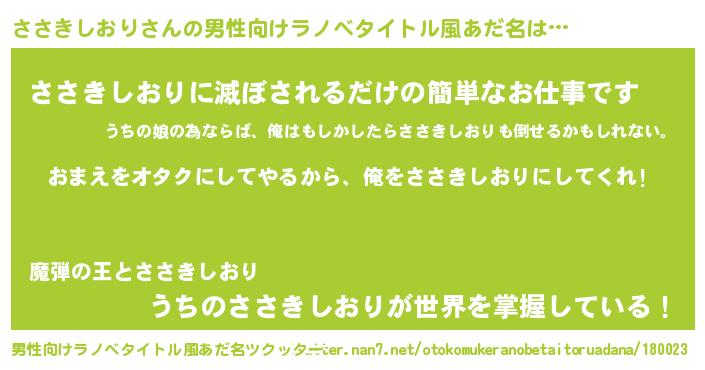 | 肩書あだ名 | 『ささきしおり教授』『ささきしおり船長』 |