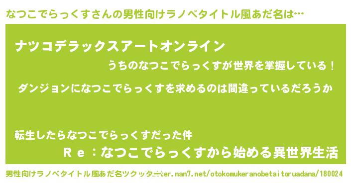 | 女子向けラノベタイトル風あだ名 | 『なつこでらっくすの卵を拾いまして』 |
