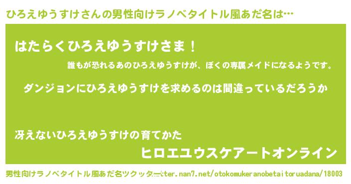 | 意味不明あだ名 | 『とにかく怪しいひろえゆうすけ』 |