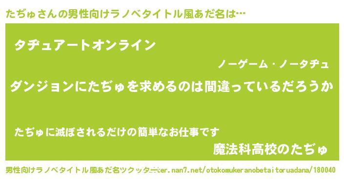 | 女子向けラノベタイトル風あだ名 | 『たぢゅは平凡を望む』『たぢゅ恋絵巻』 |