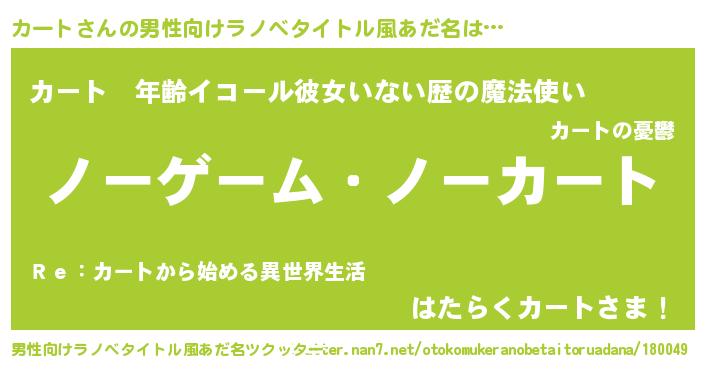 | 女子向けラノベタイトル風あだ名 | 『死神カートの再婚』『闇のカート』 |