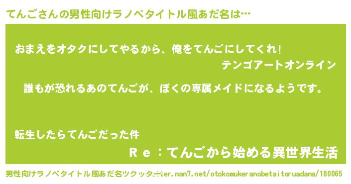 | 胡散臭い通販商品みたいなあだ名 | 『来世でも幸せになれる健康食品…その名も「てんご」』 |