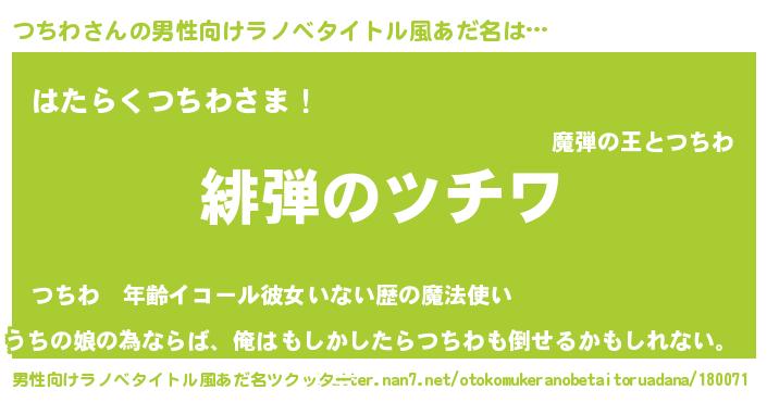 | 女子向けラノベタイトル風あだ名 | 『シンデレラつちわ家の靴箱館』 |