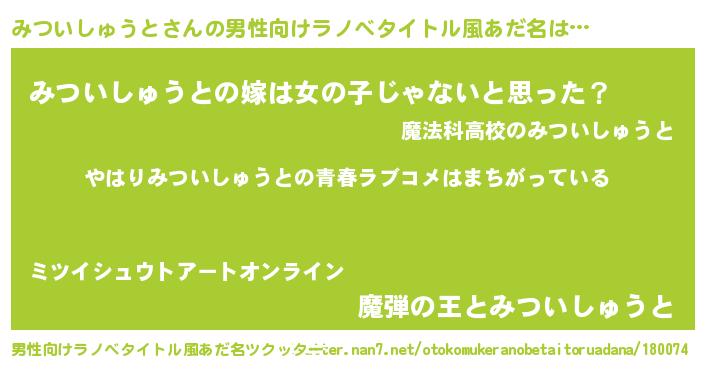 | 意味不明あだ名 | 『みついしゅうとフォーエバー』 |
