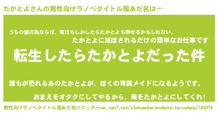 | 胡散臭い通販商品みたいなあだ名 | 『世界が平和になる高級そうな絵画…その名も「たかとよ」』 |