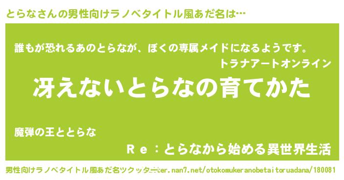 | 女子向けラノベタイトル風あだ名 | 『シンデレラとらな家の靴箱館』 |
