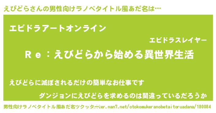 | 女子向けラノベタイトル風あだ名 | 『えびどらストレイドッグス』 |