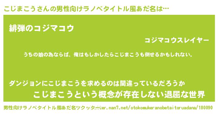 | 女子向けラノベタイトル風あだ名 | 『こじまこう伯爵の花嫁』 |