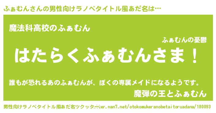| 女子向けラノベタイトル風あだ名 | 『首の姫と首なしふぁむん』 |