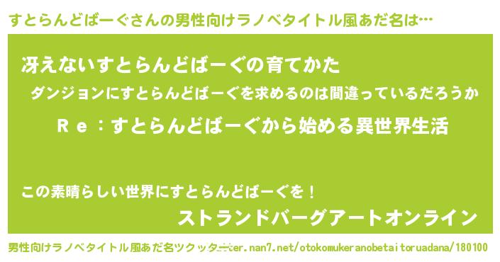 | 意味不明あだ名 | 『自称すとらんどばーぐ』 |
