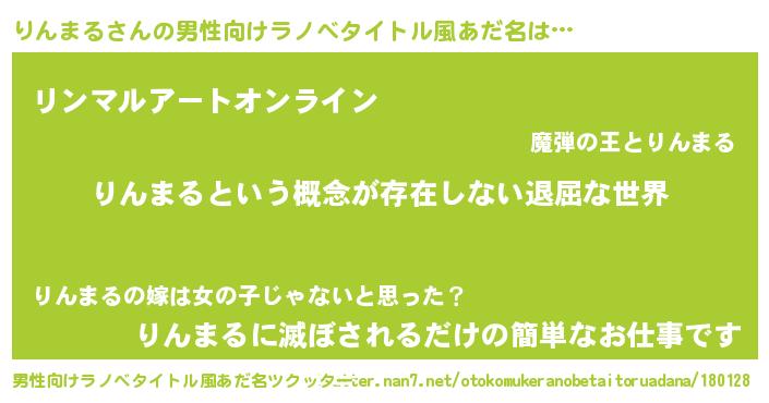| 胡散臭い通販商品みたいなあだ名 | 『絶対に幸福をもたらす健康食品…その名も「りんまる」』 |