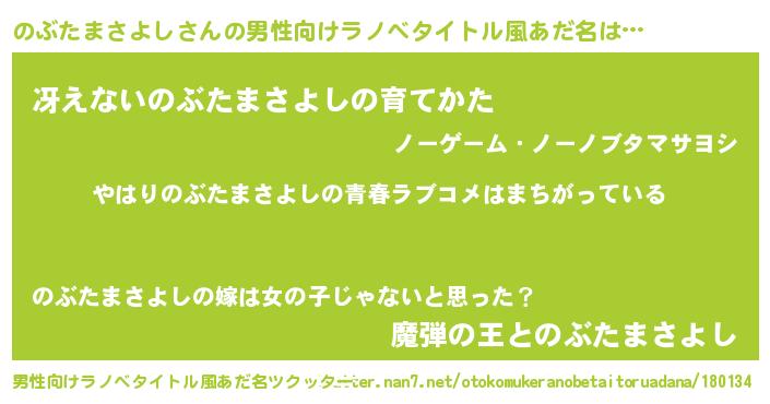 | 女子向けラノベタイトル風あだ名 | 『のぶたまさよし伯爵の花嫁』 |