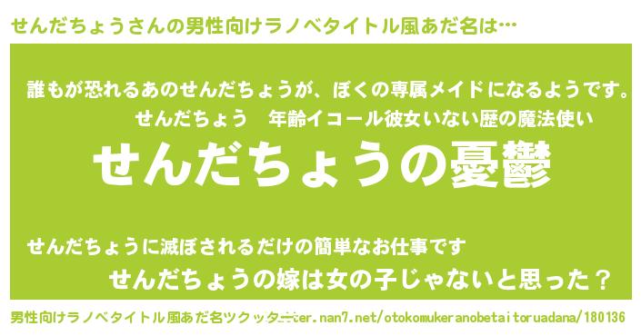 | 胡散臭い通販商品みたいなあだ名 | 『必ず成功する霊験あらたかなお札…その名も「せんだちょう」』 |
