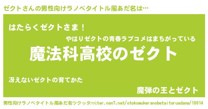 ゼクトさんの男性向けラノベタイトル風あだ名をツクッター!
