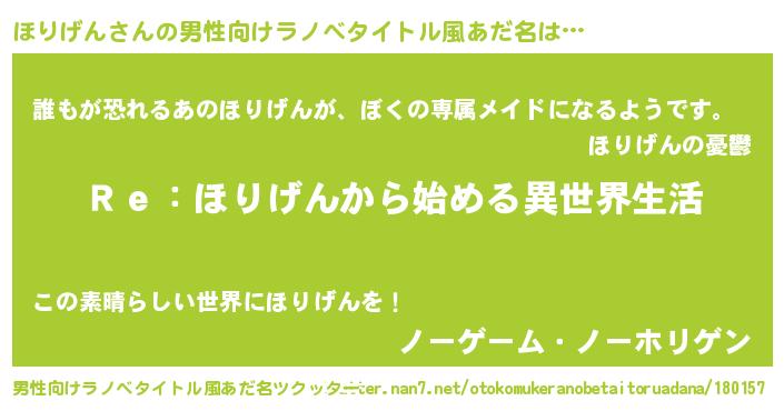 | 女子向けラノベタイトル風あだ名 | 『闇のほりげん』『死神ほりげんの再婚』 |