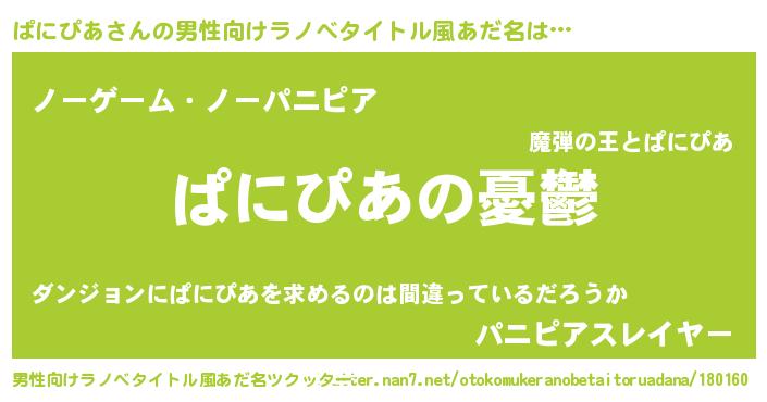 | 女子向けラノベタイトル風あだ名 | 『(仮)ぱにぴあのやんごとなき事情』 |