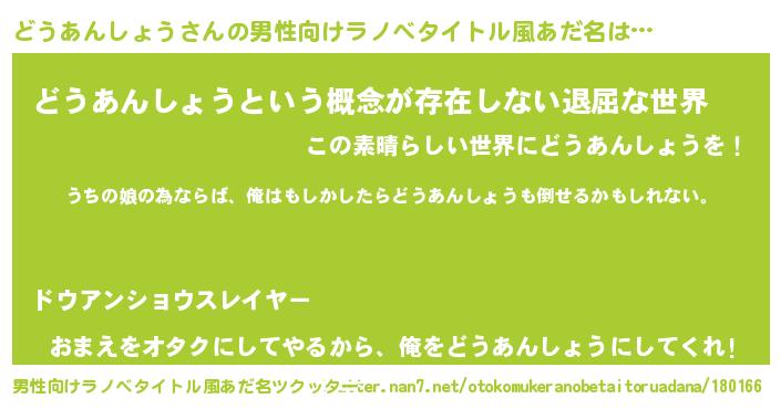 | 女子向けラノベタイトル風あだ名 | 『どうあんしょうの婚約者』 |