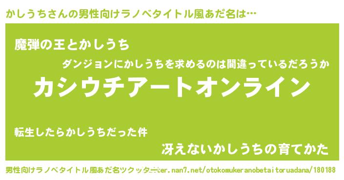 | 胡散臭い通販商品みたいなあだ名 | 『億万長者になれるブレスレット…その名も「かしうち」』 |