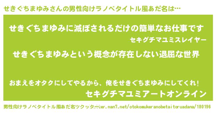 せきぐちまゆみさんの男性向けラノベタイトル風あだ名をツクッター!