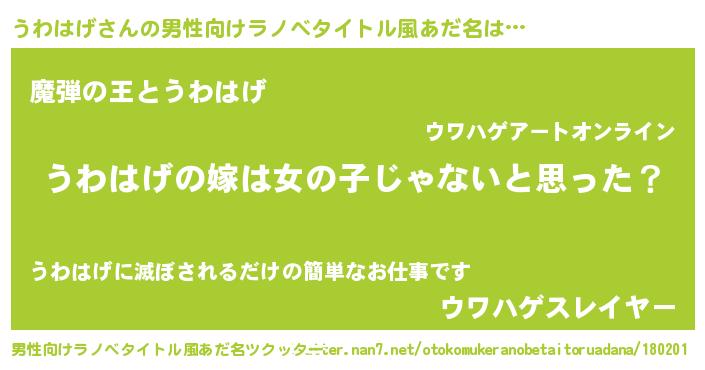 | 胡散臭い通販商品みたいなあだ名 | 『全米が絶賛したサプリメント…その名も「うわはげ」』 |