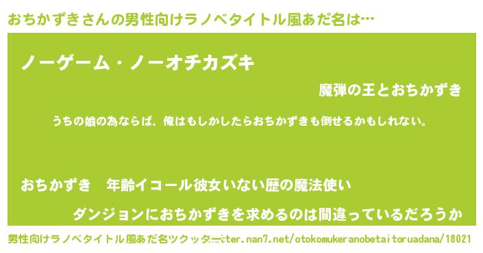 | 女子向けラノベタイトル風あだ名 | 『おちかずきの婚約者』 |