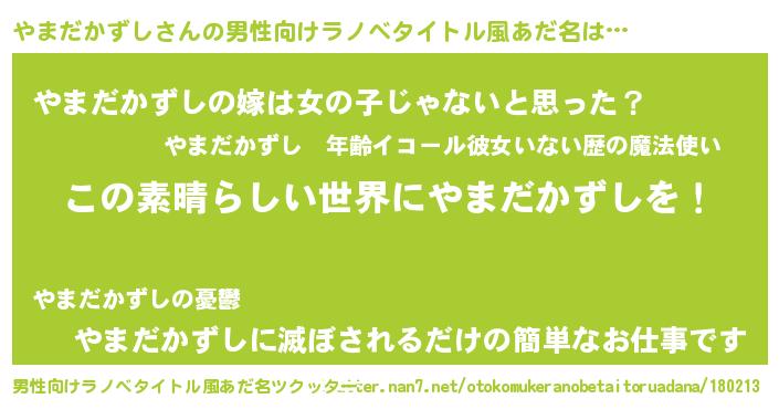| 意味不明あだ名 | 『住所不定無職やまだかずし(4歳)』 |