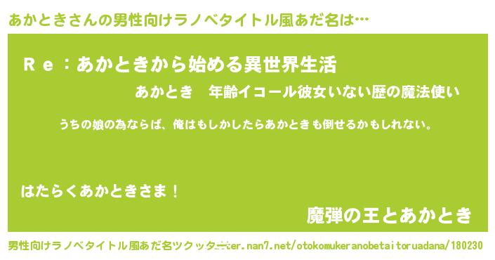 | 胡散臭い通販商品みたいなあだ名 | 『運命の人と巡り会える高級そうな絵画…その名も「あかとき」』 |