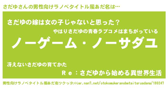 | 意味不明あだ名 | 『眠気覚ましガムさだゆ味』『自称さだゆ』 |