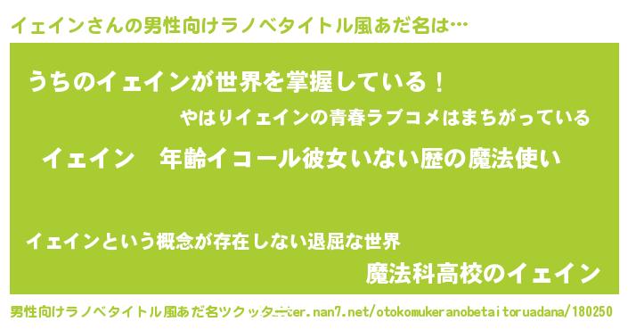 | 意味不明あだ名 | 『ヨモギ科イェイン属』『自称イェイン』 |