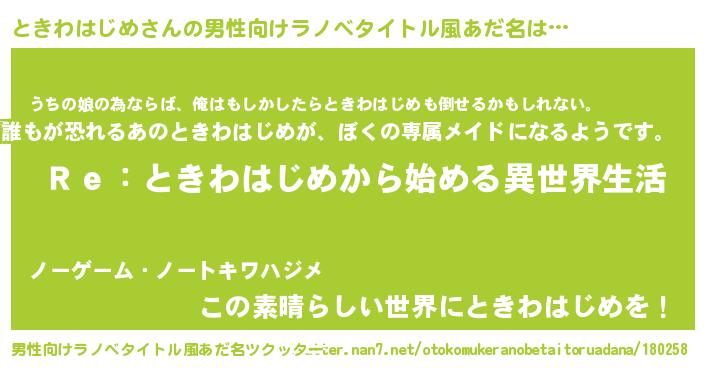 | ヒーロー風カッコイイあだ名 | 『最強戦士トキワハジメ』『仮面トキダー』 |