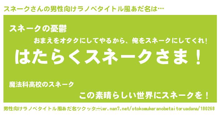 | 女子向けラノベタイトル風あだ名 | 『首の姫と首なしスネーク』 |