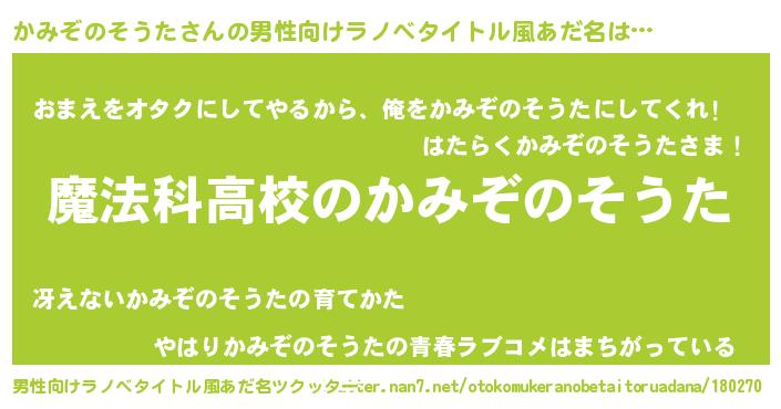 | 意味不明あだ名 | 『自称かみぞのそうた』 |