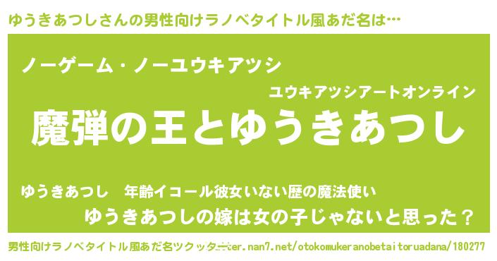 ゆうきあつしさんの男性向けラノベタイトル風あだ名をツクッター!