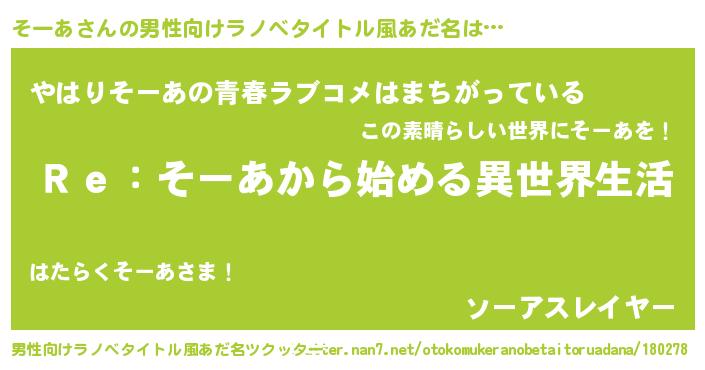 | 女子向けラノベタイトル風あだ名 | 『そーあストレイドッグス』 |