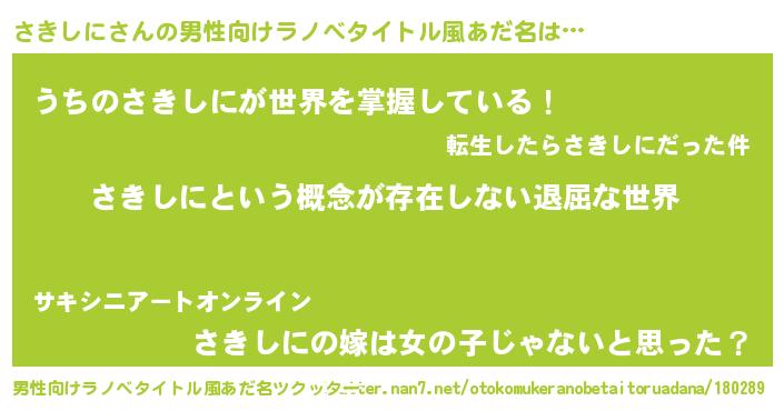 | 胡散臭い通販商品みたいなあだ名 | 『来世でも幸せになれる水素水…その名も「さきしに」』 |