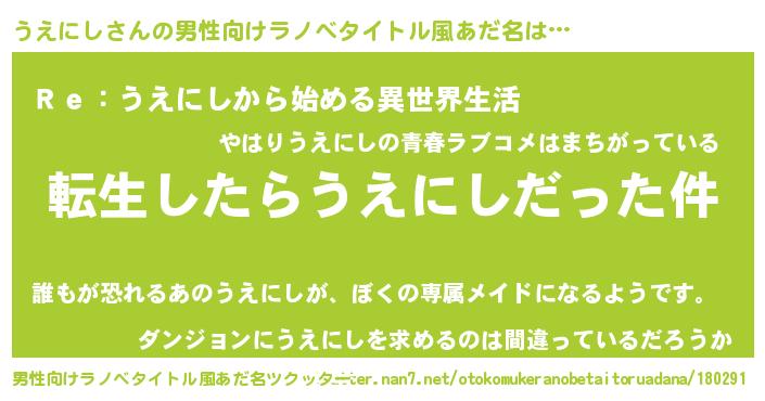| 料理風あだ名 | 『うえにしとほうれんそうの和風グラタン』 |