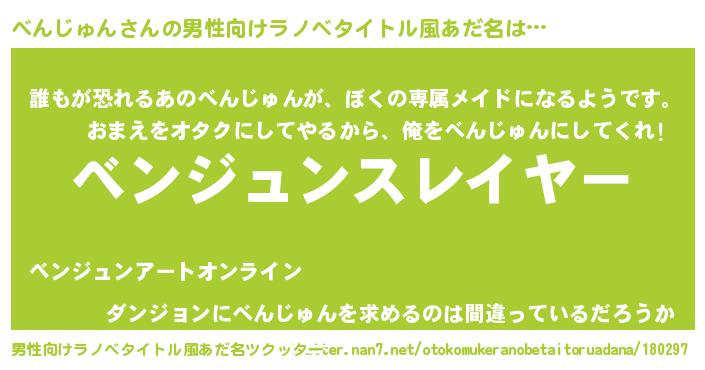 | 胡散臭い通販商品みたいなあだ名 | 『絶対に幸福をもたらす水素水…その名も「べんじゅん」』 |