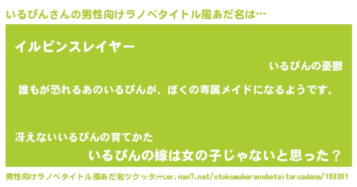 ヘコむあだ名 | 『いるぴん(笑)』『いるっちょ』 |
