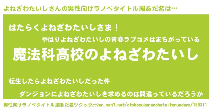 | 意味不明あだ名 | 『自称よねざわたいし』 |