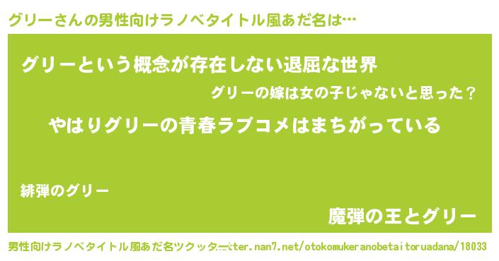 | 女子向けラノベタイトル風あだ名 | 『グリーの雑貨屋さん』 |