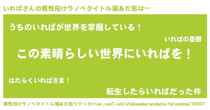 | 胡散臭い通販商品みたいなあだ名 | 『世界中を虜にした世界で10本だけ現存している希少なブランデー…その名も「いれば」』 |