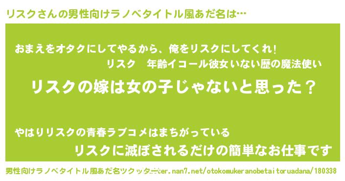 | 女子向けラノベタイトル風あだ名 | 『リスク様がみてる』 |