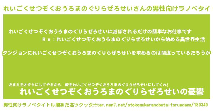 | 女子向けラノベタイトル風あだ名 | 『れいごくせつぞくおうろまのぐりらぜろせいは平凡を望む』 |