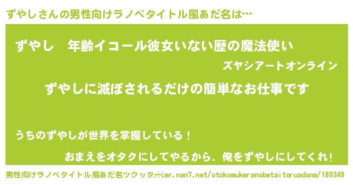 | 伝説のあだ名 | 『救世主となる錬金術士ずやし』 |