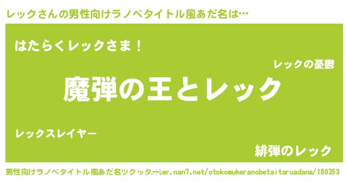 | 女子向けラノベタイトル風あだ名 | 『乙女ゲームの破滅フラグしかない悪役レックに転生してしまった…』 |