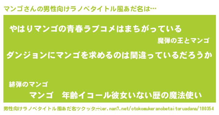 | 女子向けラノベタイトル風あだ名 | 『マンゴは平凡を望む』 |