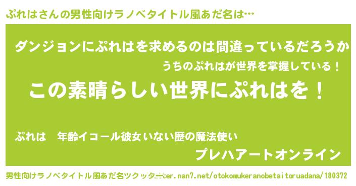 ぷれはさんの男性向けラノベタイトル風あだ名をツクッター!