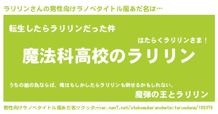 | 意味不明あだ名 | 『自称ラリリン』『もやし科ラリリン属』 |