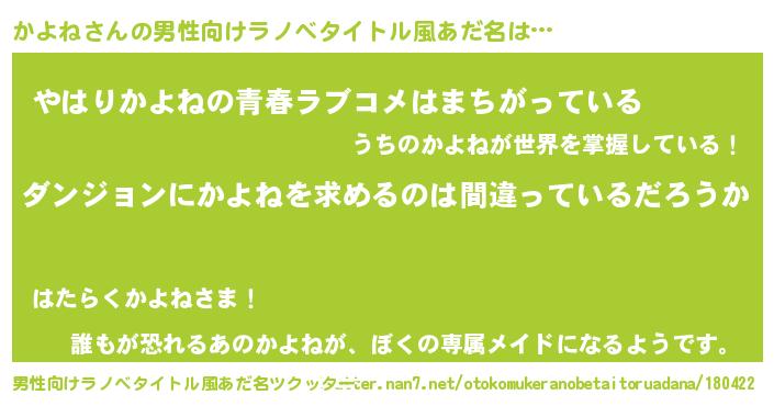 かよねさんの男性向けラノベタイトル風あだ名をツクッター!