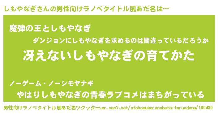 | 意味不明あだ名 | 『住所不定無職しもやなぎ(10歳)』 |